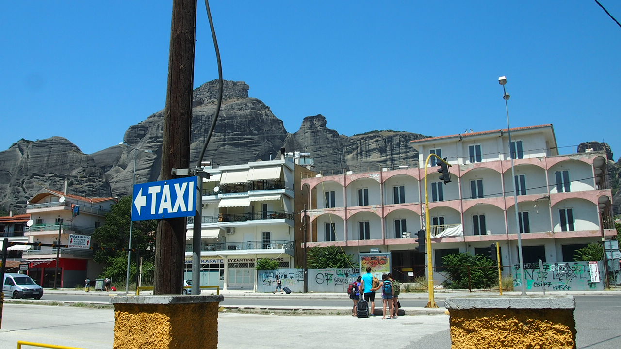 ホテルでチェックアウト後、フロントでタクシーを頼みます。行先はメタモルフォシスです。自分たちは荷物をホテルへ預けることが出来たので、荷物をホテルに預けました。上記のルートを見学時間含めて6時間位かけて巡りました。修道院を巡った後は歩いてホテルへ戻り、荷物を受け取り、カランバカ駅へ向かいました。