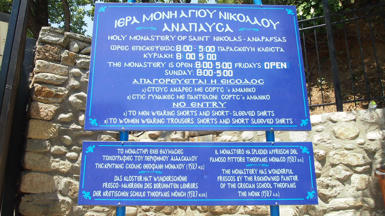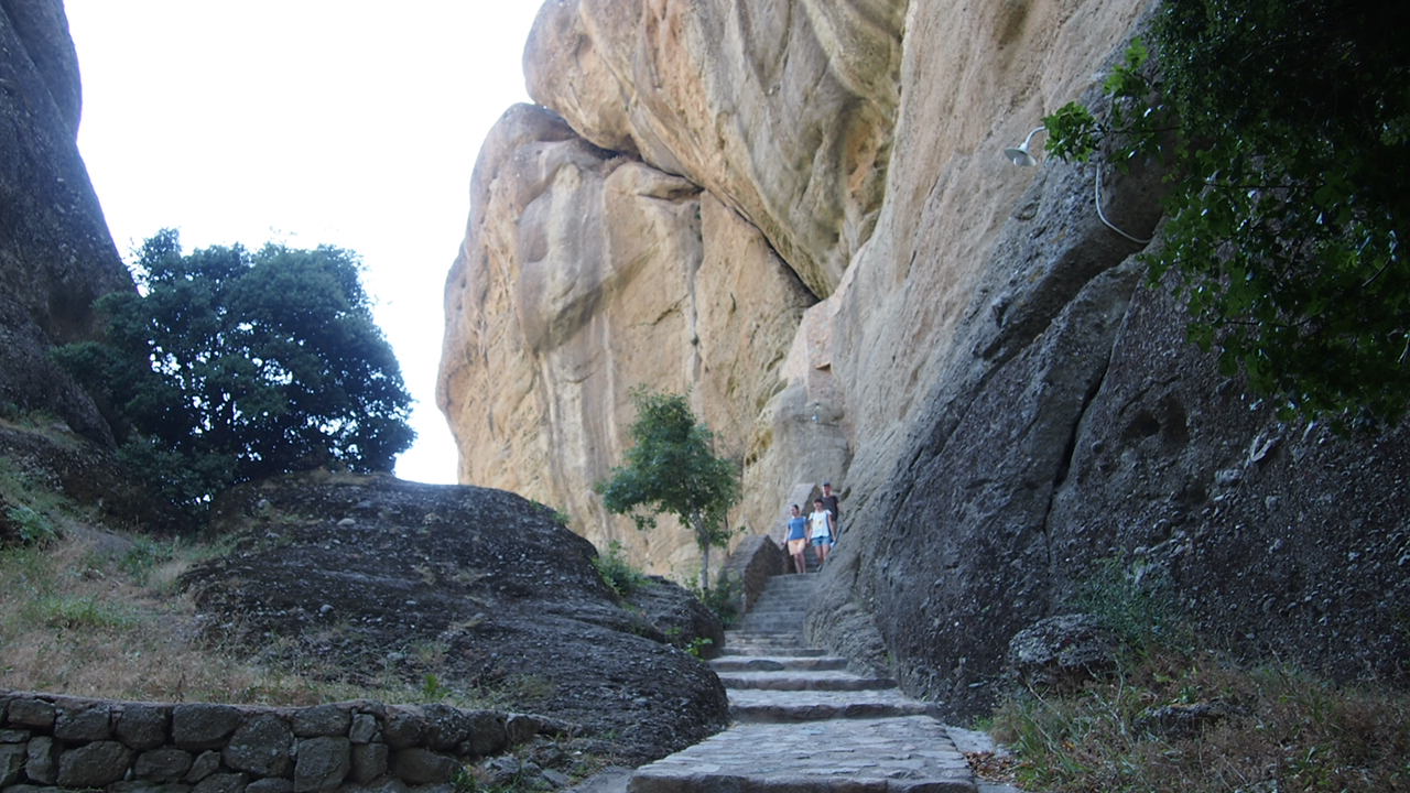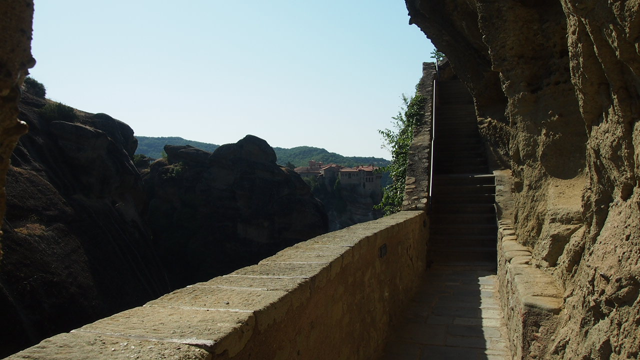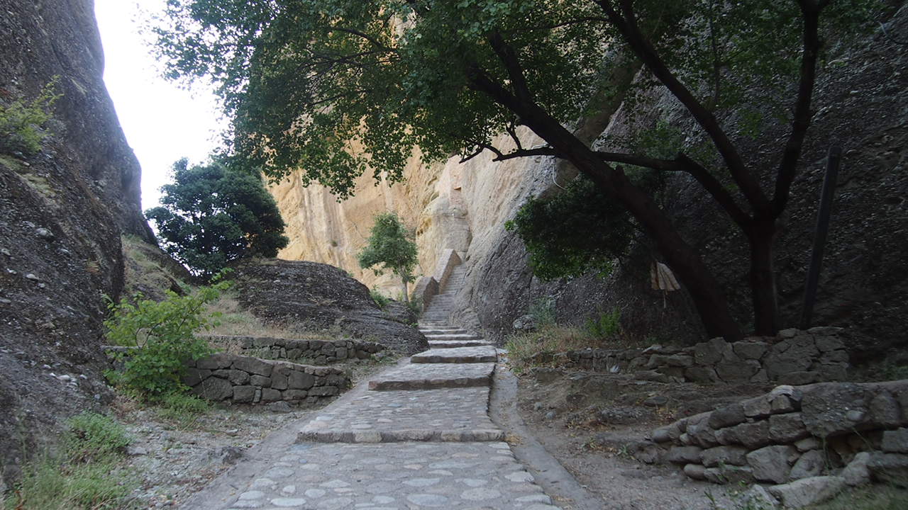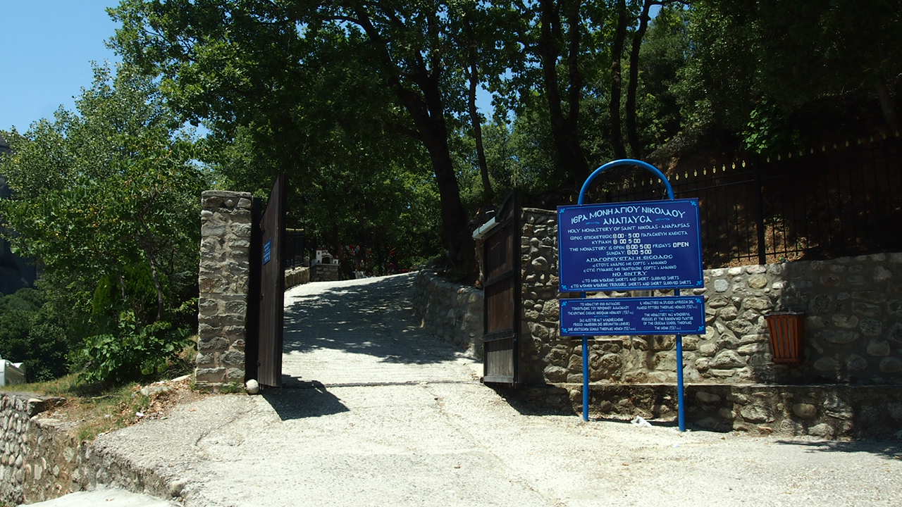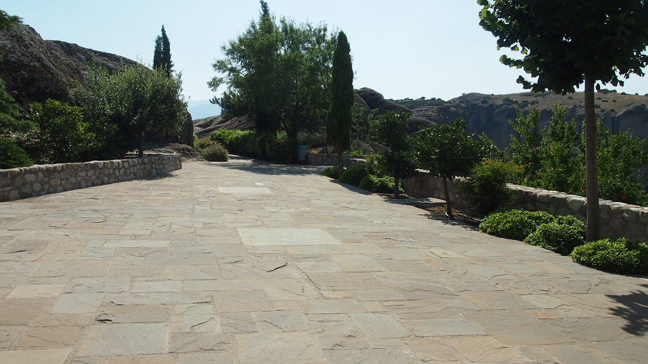 アギオス・ステファノス修道院から歩いて20分位に位置する修道院です。残念ながら時間がなくて奥まで見学出来ませんでした。修道院の中は約30分くらいあれば見学できるでしょう。修道院へ行く途中にカランバカへ抜けれる山岳ルートがあります。分かりづらいですが、英語で”カランバカ”と書かれた標識があります。