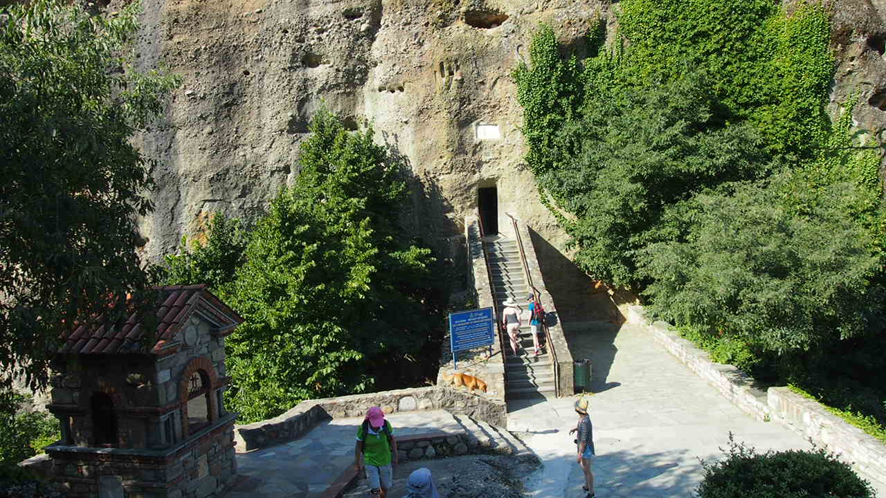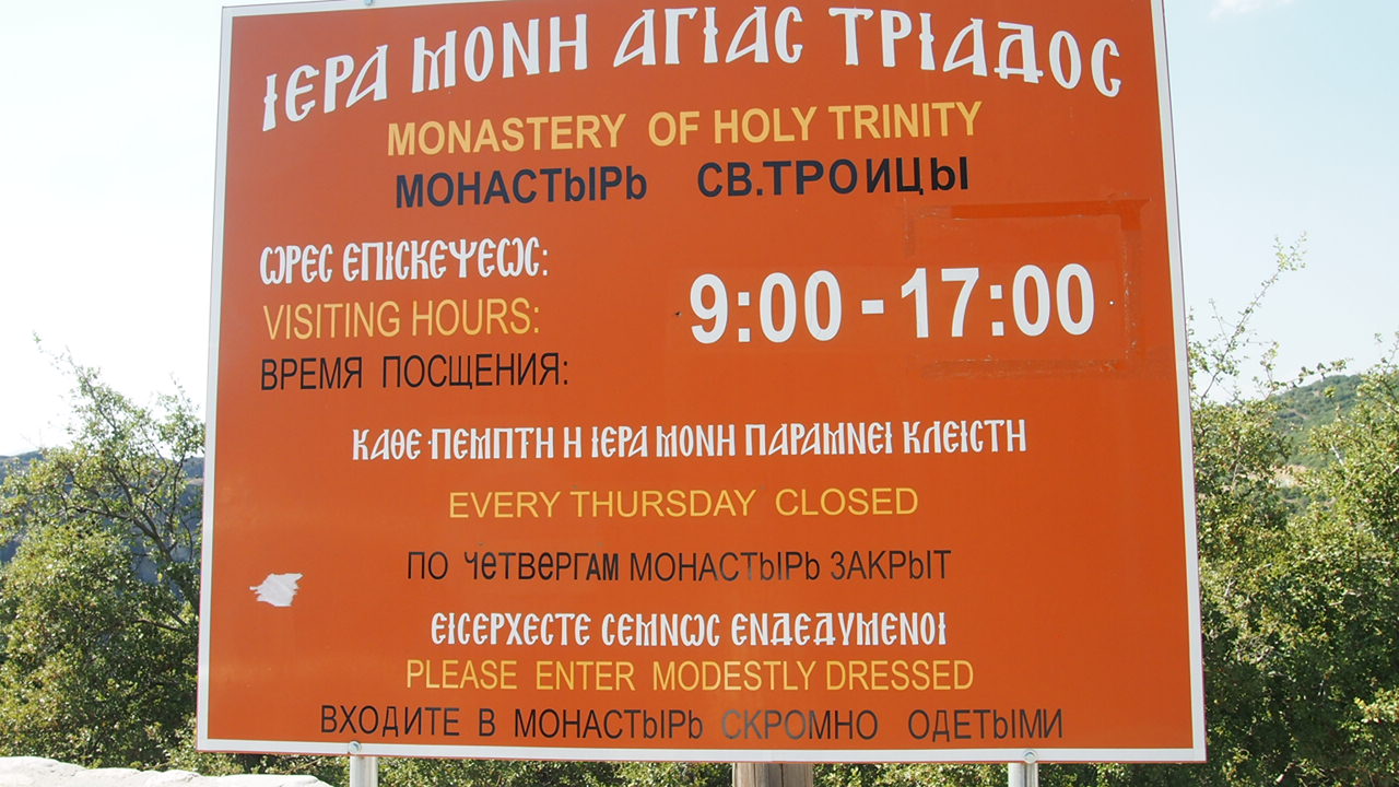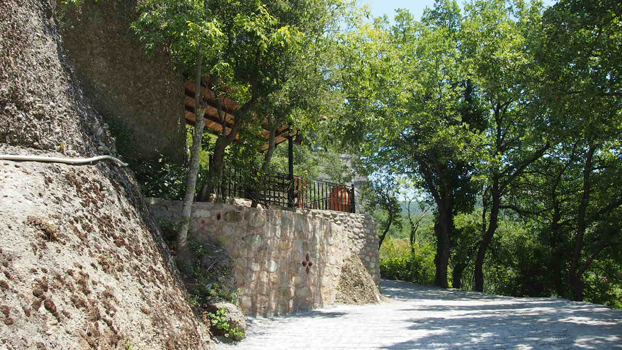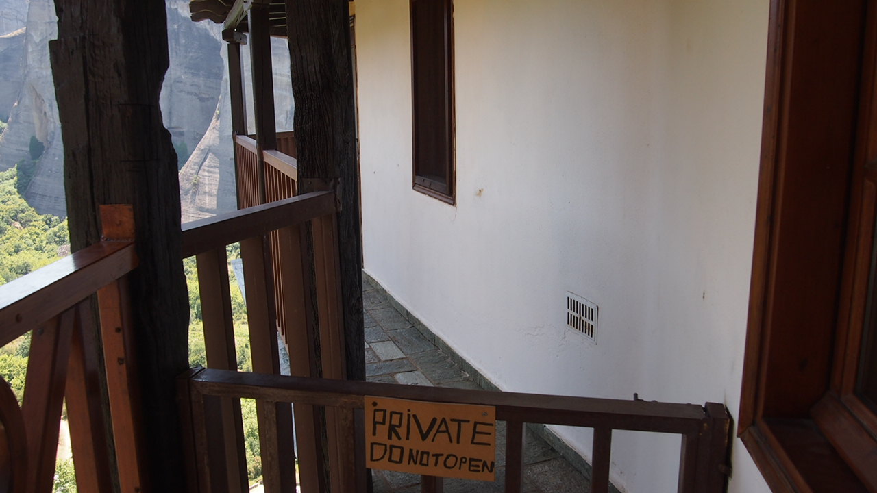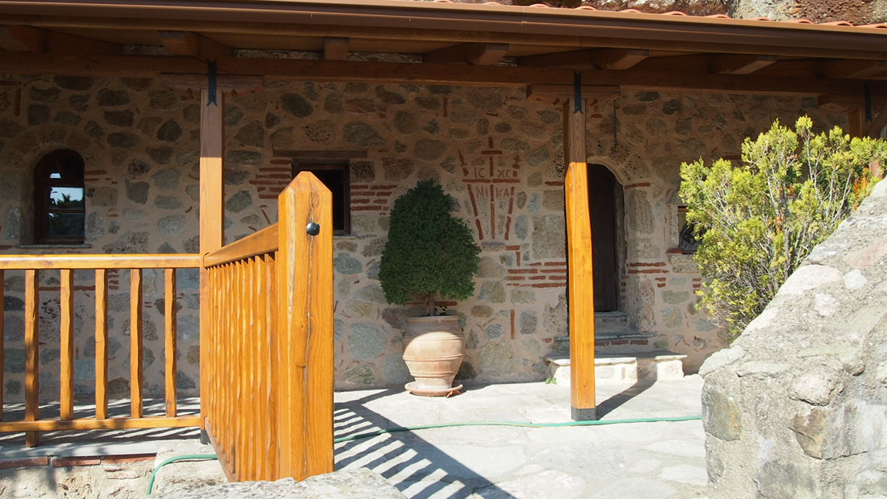 アギオス・ステファノス修道院から歩いて20分位に位置する修道院です。残念ながら時間がなくて奥まで見学出来ませんでした。修道院の中は約30分くらいあれば見学できるでしょう。修道院へ行く途中にカランバカへ抜けれる山岳ルートがあります。分かりづらいですが、英語で”カランバカ”と書かれた標識があります。