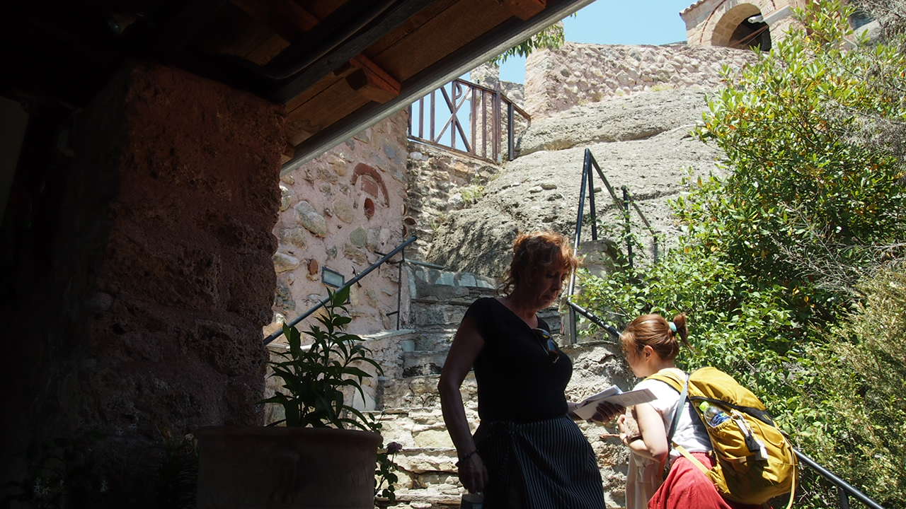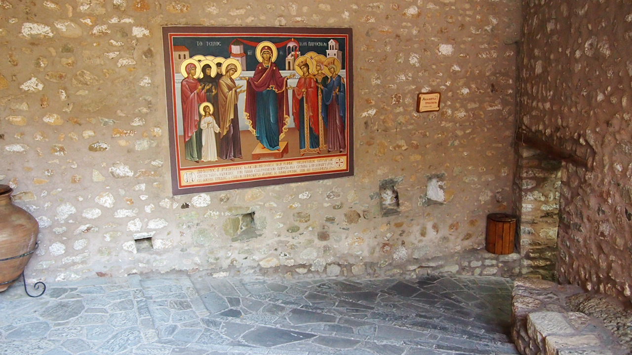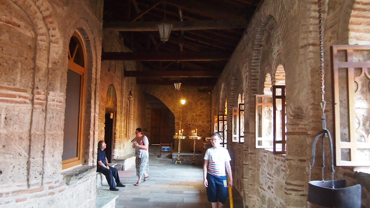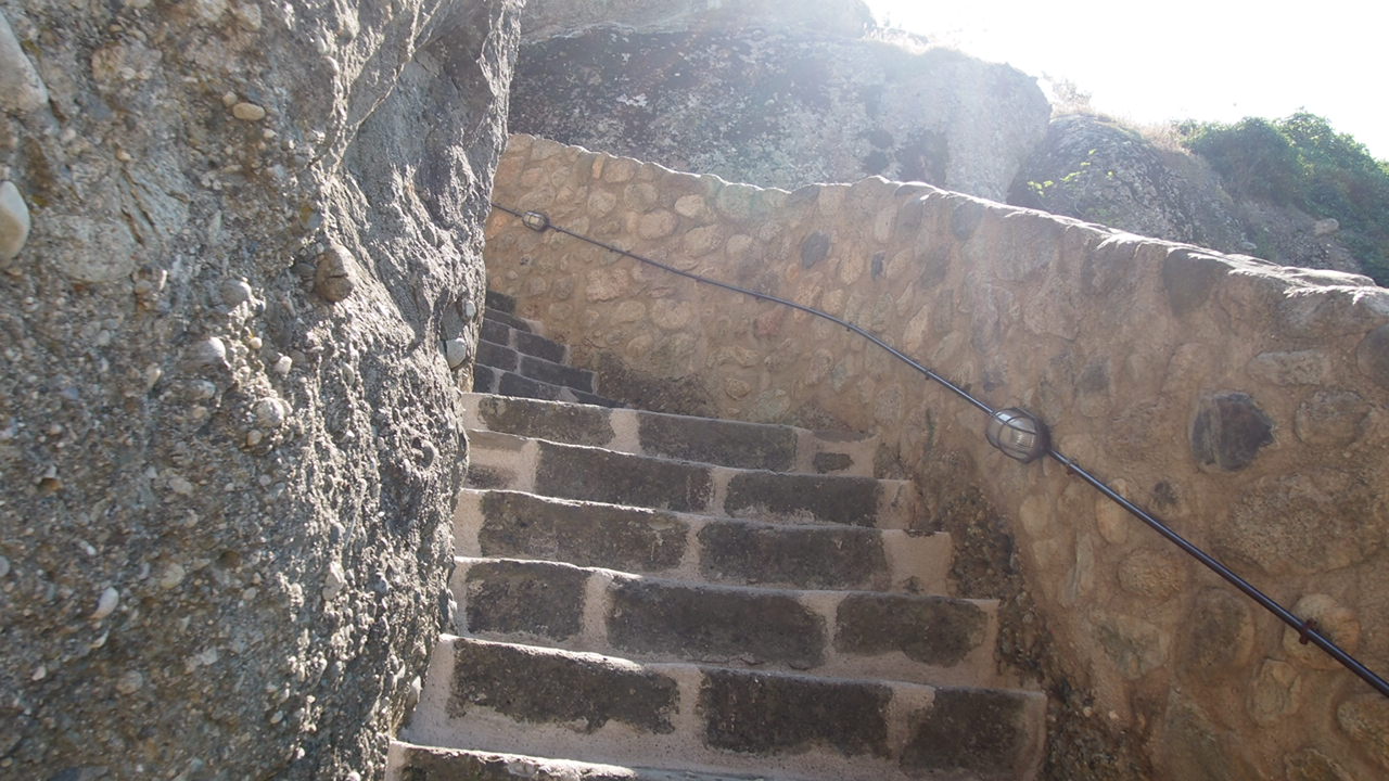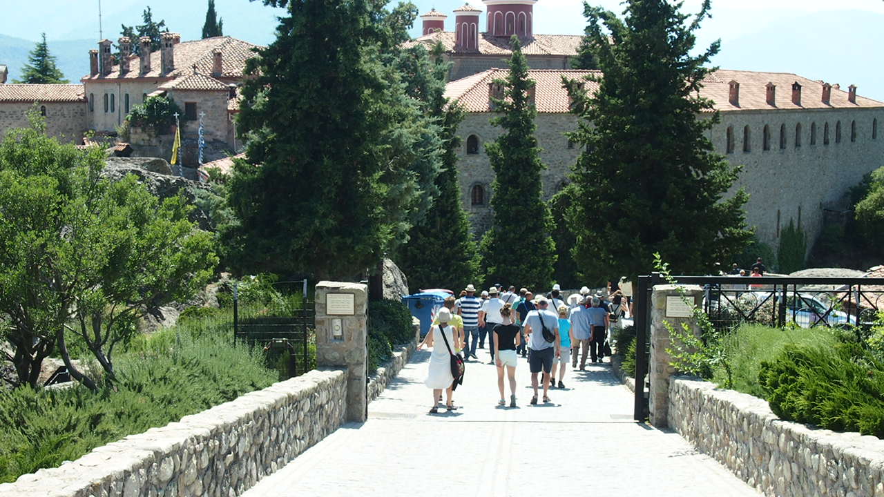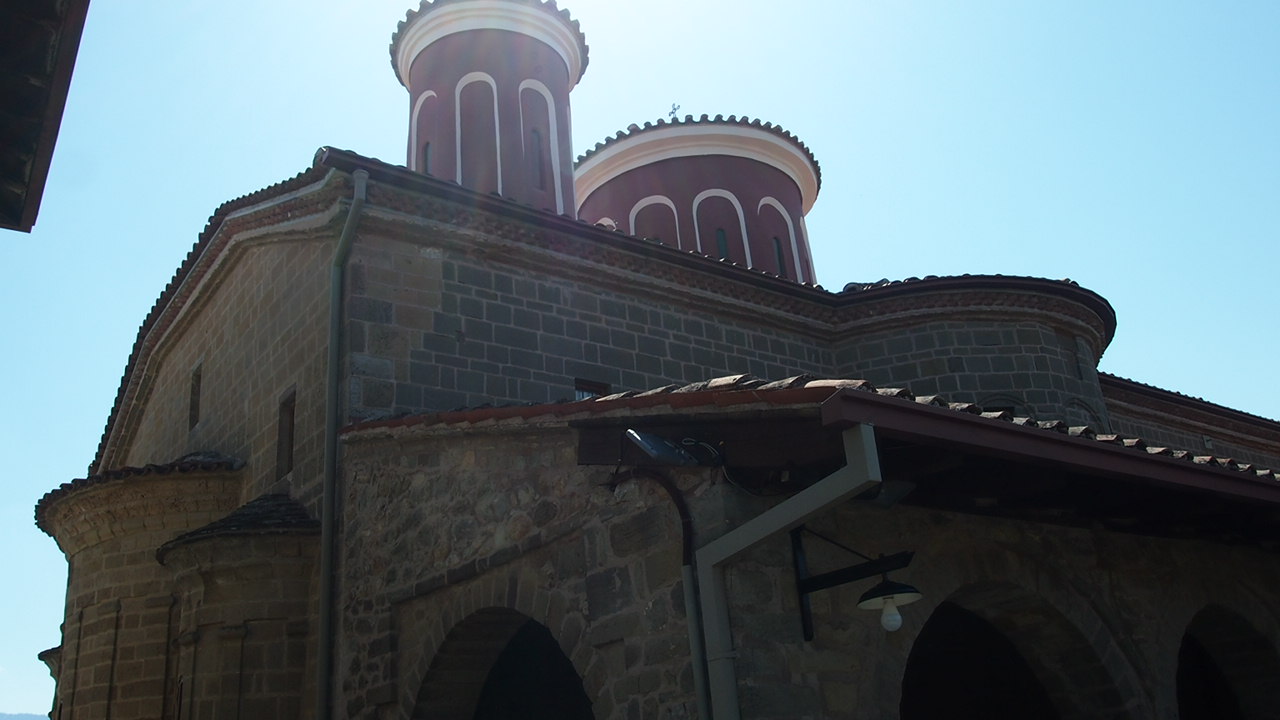 アギオス・ステファノス修道院から歩いて20分位に位置する修道院です。残念ながら時間がなくて奥まで見学出来ませんでした。修道院の中は約30分くらいあれば見学できるでしょう。修道院へ行く途中にカランバカへ抜けれる山岳ルートがあります。分かりづらいですが、英語で”カランバカ”と書かれた標識があります。