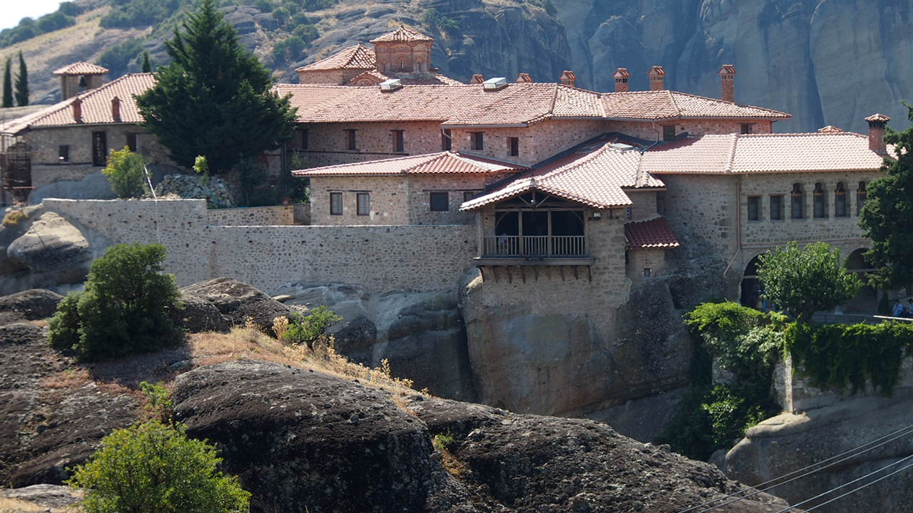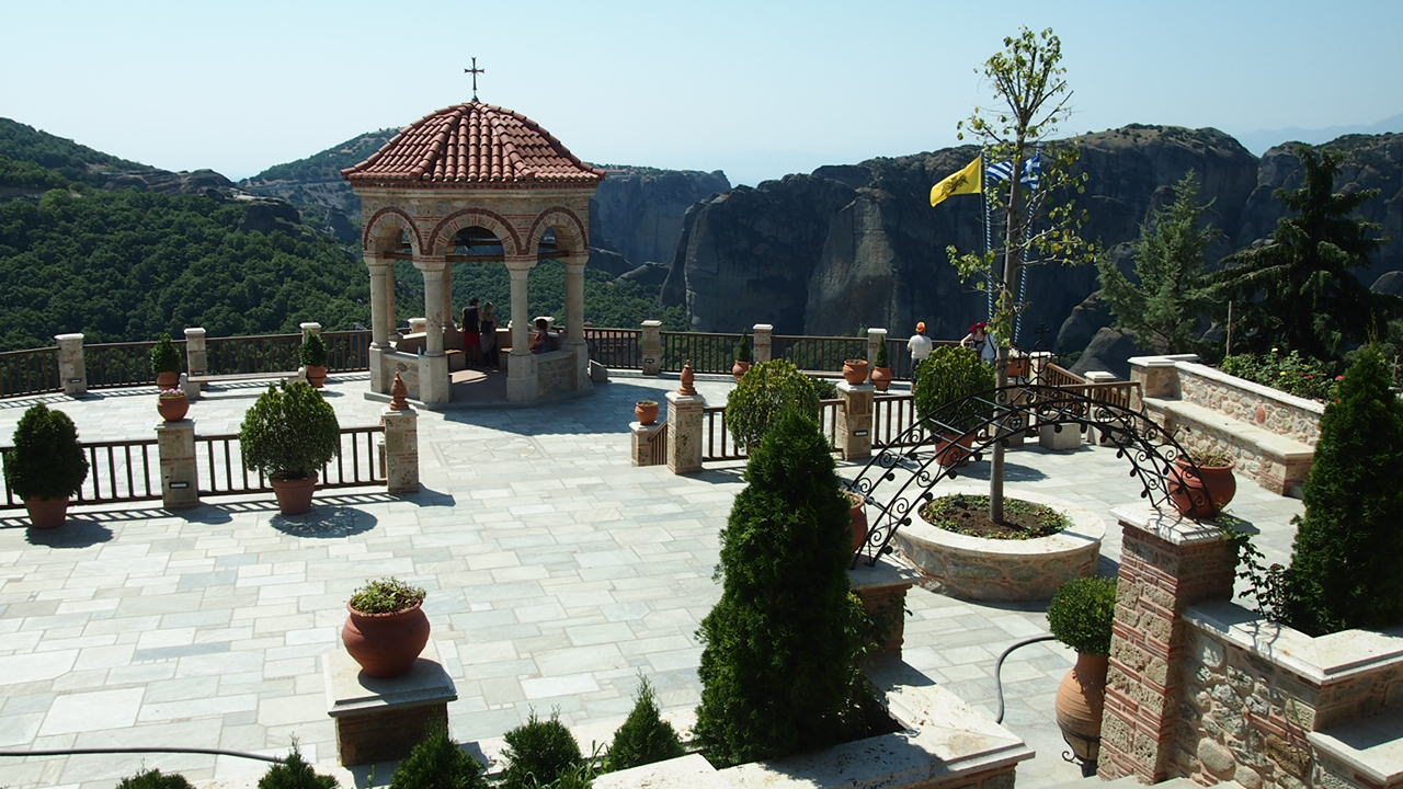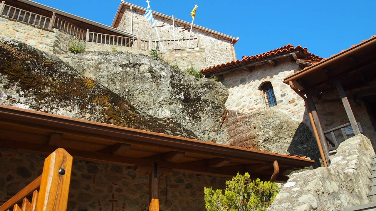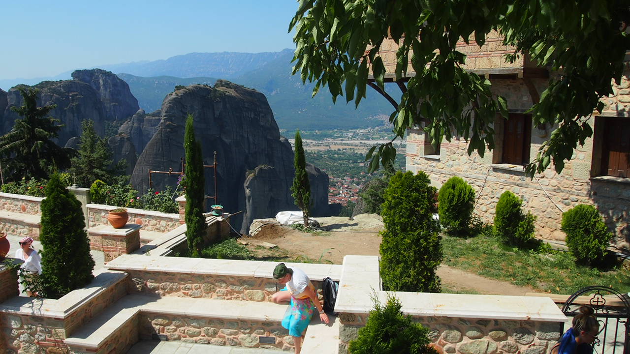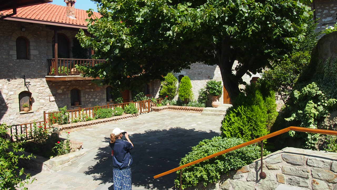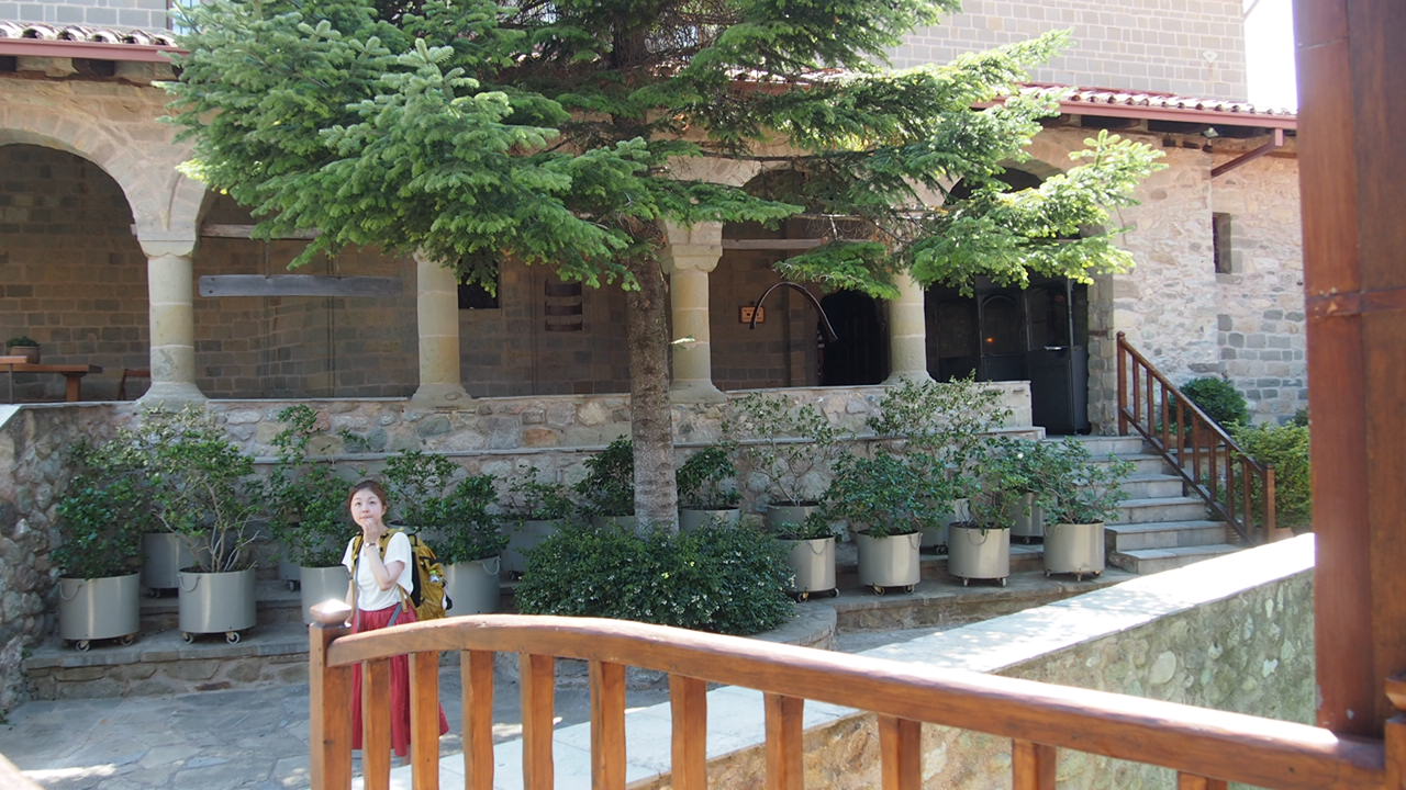 メテオラの修道院の中で一番写真映えする修道院ではないでしょうか。中庭が素敵でした。各修道院は階段や坂を登らないと行けないのに対して、階段を登らずとも行ける唯一の修道院です。修道院の中は約30分から1時間あれば見学できるでしょう。