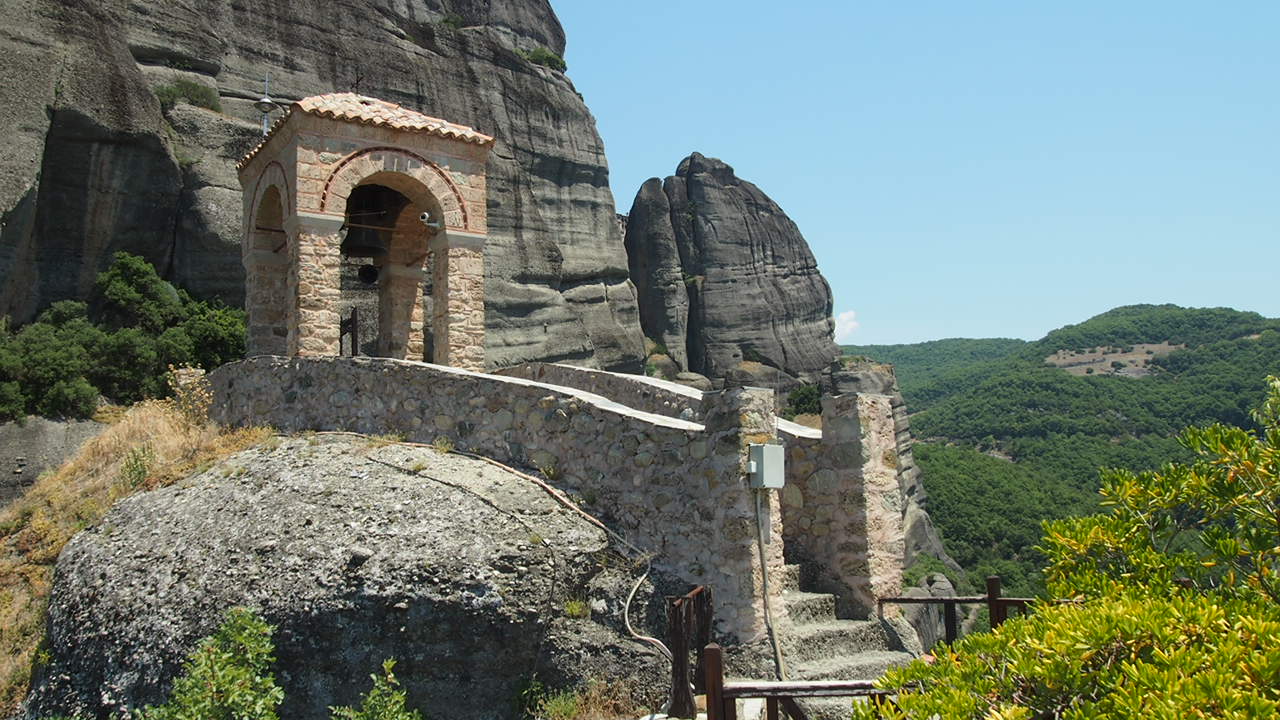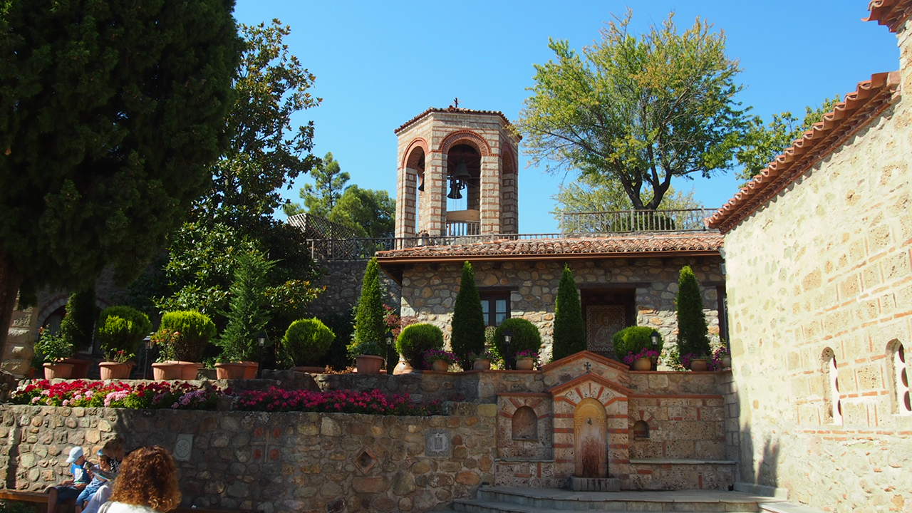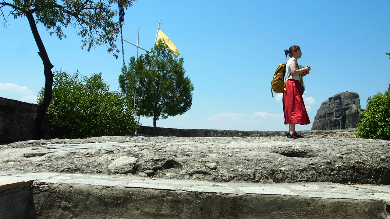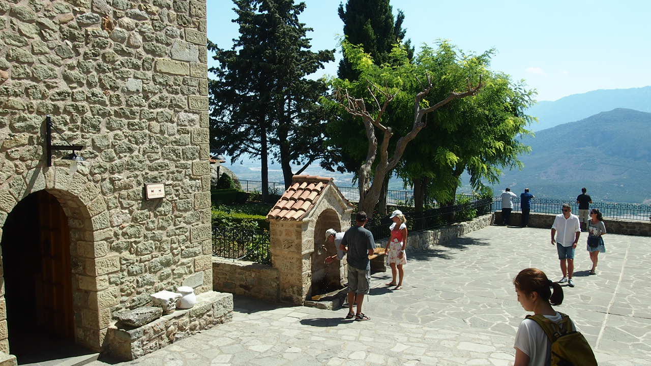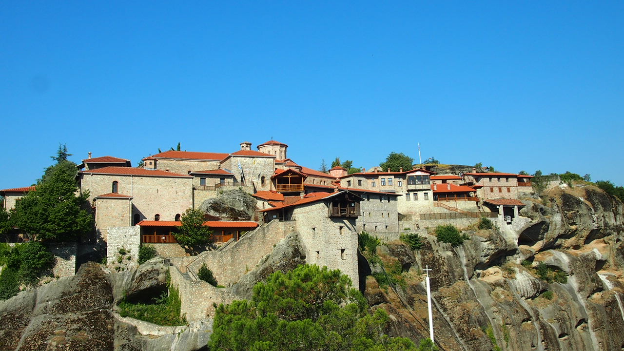 メテオラの修道院の中で一番写真映えする修道院ではないでしょうか。中庭が素敵でした。各修道院は階段や坂を登らないと行けないのに対して、階段を登らずとも行ける唯一の修道院です。修道院の中は約30分から1時間あれば見学できるでしょう。