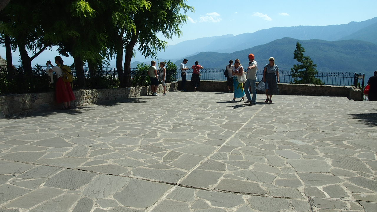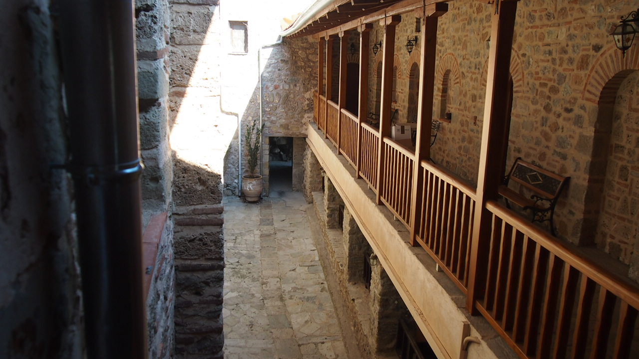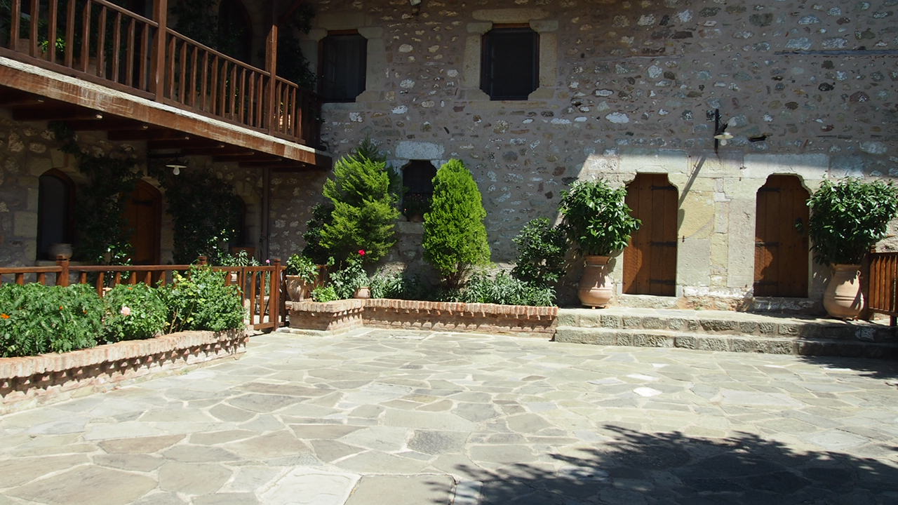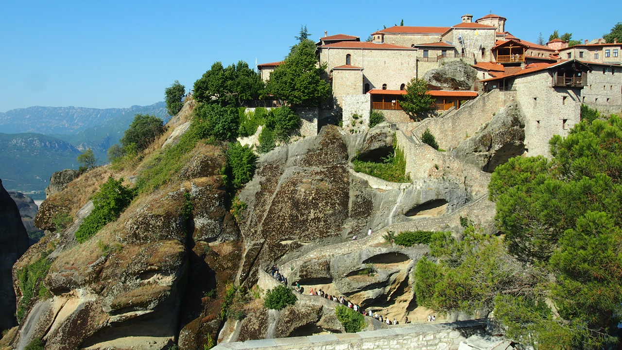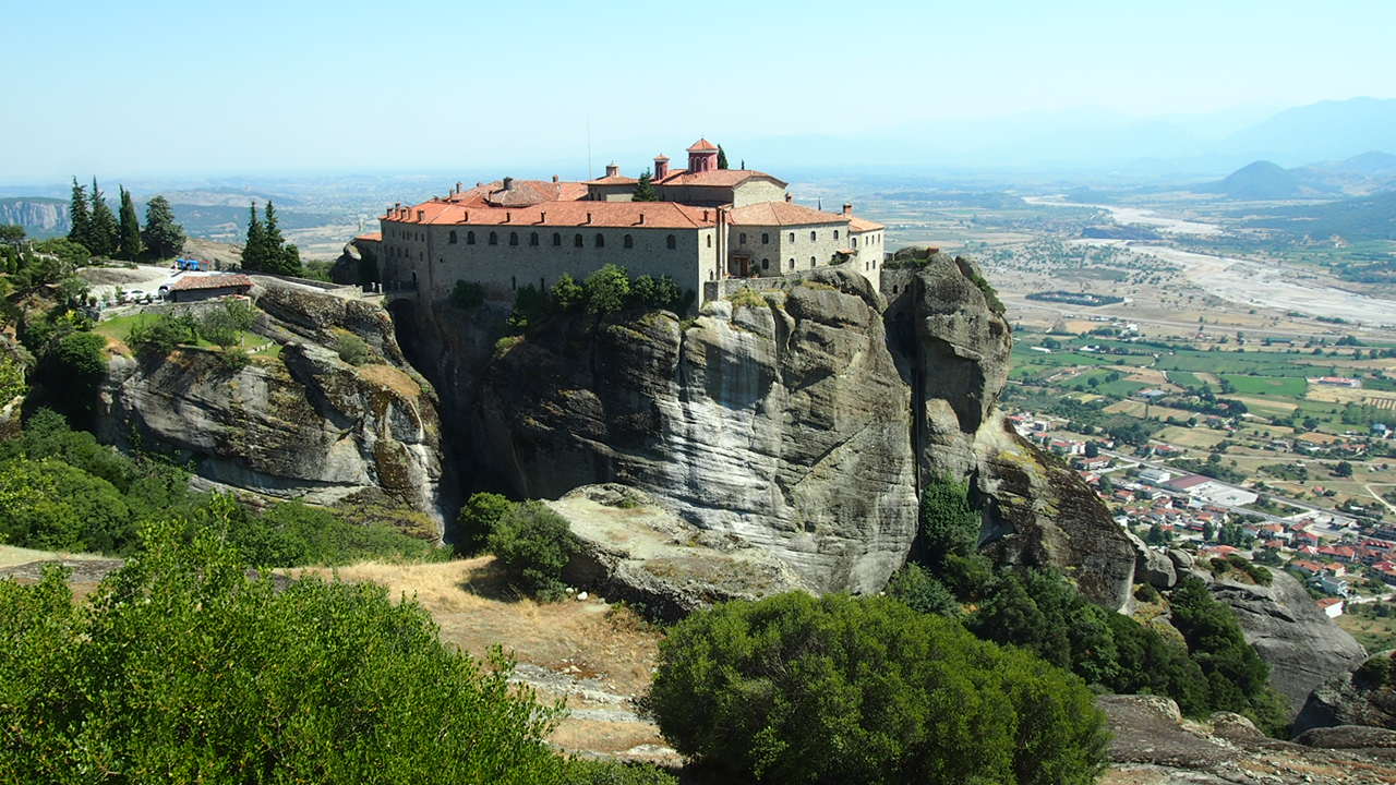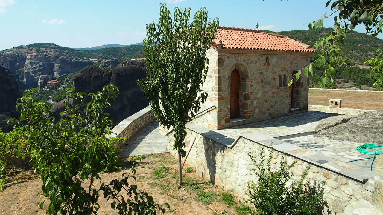 メテオラの修道院の中で一番写真映えする修道院ではないでしょうか。中庭が素敵でした。各修道院は階段や坂を登らないと行けないのに対して、階段を登らずとも行ける唯一の修道院です。修道院の中は約30分から1時間あれば見学できるでしょう。