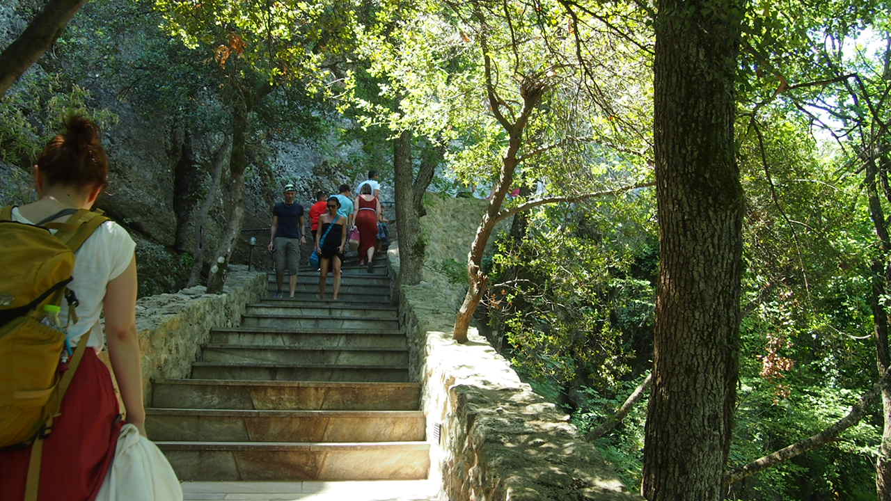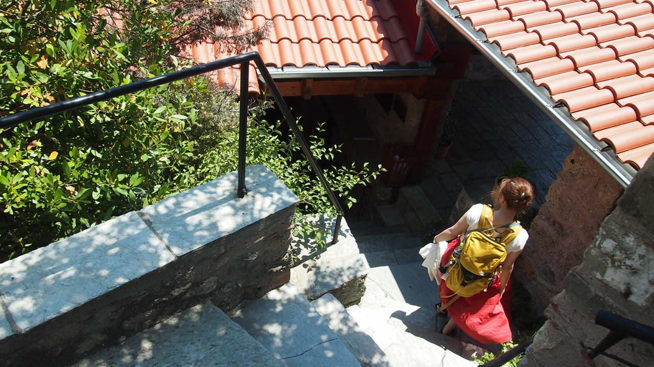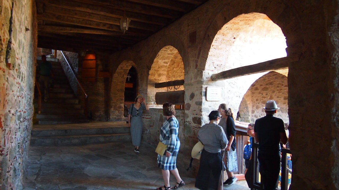 小さな修道院です。修道院の中は約30分くらいあれば見学できるでしょう。修道院へ行くまでの急なこう配と階段がきつかったです。