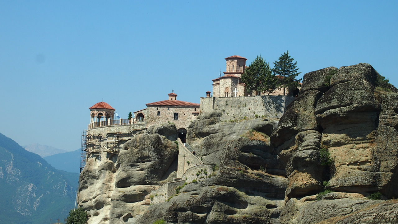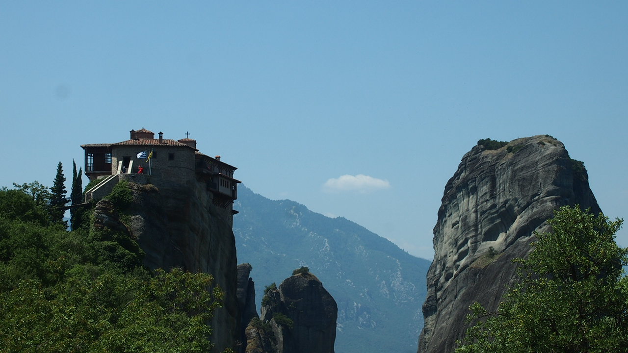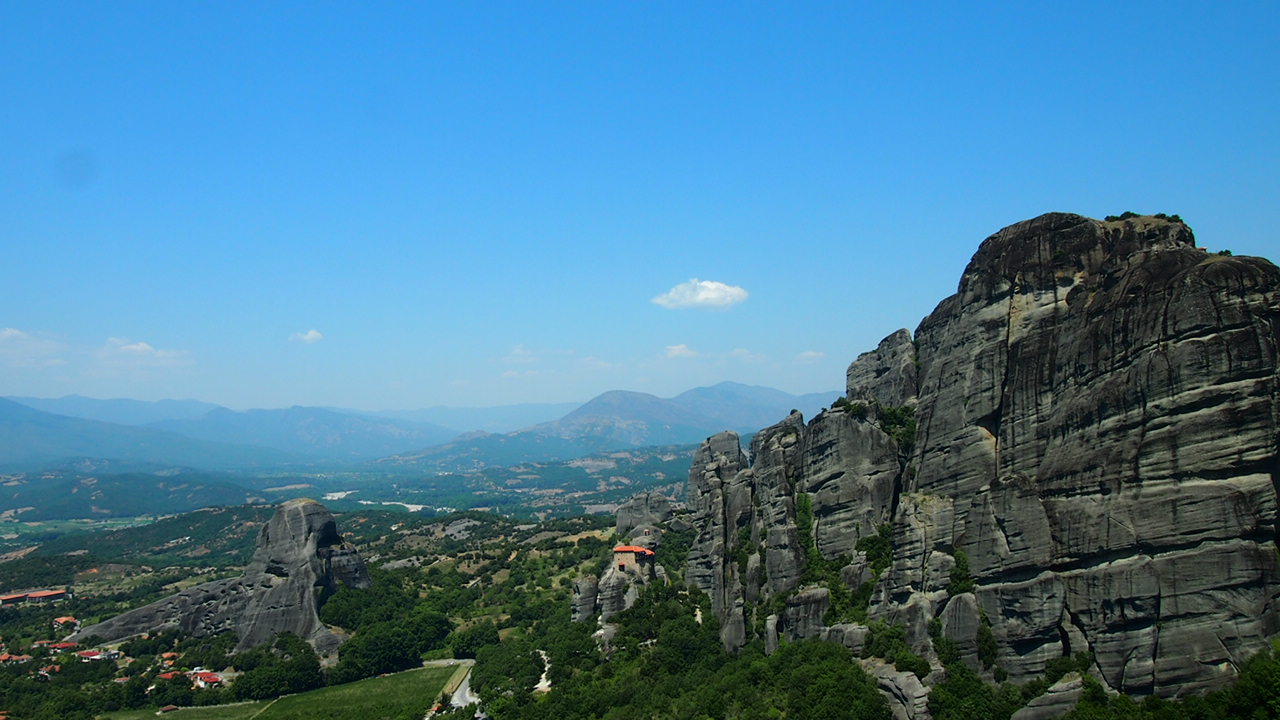 メテオラはギリシャに行った際に訪れたい場所の一つです。メテオラの主要な街カランバカに降りると、切り立った幾つもの巨大な岩が存在感を表します。そのうちの幾つかの岩の上には修道院があります。それら一帯の地形および修道院群をメテオラと呼びます。そびえ立つ岩、その岩と同化している修道院には何かを感じさせられます。